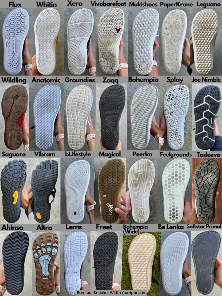 15 Barefoot Sneakers That Are Better Than Vans Mickle, May 29, 2025December 13, 2025 See which Barefoot Shoes made our Top 5 Listand why they’re loved by walkers, runners, and explorers. Barefoot sneakers are an awesome way to enjoy the perks of barefoot shoes while still looking stylish. In this list, you’ll find my top 15 barefoot sneakers that look great—and feel even better! Table Of Contents Why Barefoot Sneakers Are Better Than VansThe Best Barefoot SneakersHYKES TerraKoelShapenBohempiaSplayBe LenkaBarebaricsPeerkoMukishoesGroundiesOhne ProjectLems ShoesXero ShoesFeelgroundsVivobarefootBarefoot Sneaker Runner UpsBarefoot Sneaker Width Comparison Why Barefoot Sneakers Are Better Than Vans Why should it matter if you’re rocking Vans? Honestly, when it comes to shoes, you could do worse (looking at you, stilettos). But there are some solid reasons to think about trading in your Vans for a barefoot sneaker alternative. Here’s what barefoot sneakers bring to the table: Foot Shape: Vans are shaped more like a plank than a human foot. More and more research shows that cramped toe boxes can lead to bunions and other common foot issues. Flexibility: Barefoot sneakers bend and move with your feet, unlike Vans, which are much stiffer. That extra flexibility supports better balance and natural movement. Zero Drop: While Vans may look flat, they actually have a slight heel lift. Even a small rise can throw off your posture and alignment, potentially leading to pain in your feet, ankles, knees, back—even your neck. The Best Barefoot Sneakers HYKES Terra Sizes US W6 – M14 | Available At: HYKES Terra What I Love About Them: The Hykes Terra are quickly becoming one of my go-to barefoot sneakers. They strike a great balance between everyday wear and outdoor function, with a sleek look that still feels totally foot-friendly. The toe box gives your toes room to spread, while the midfoot and heel stay nicely locked in—no slipping or sloppy fit here. What really stands out is the sole. It’s thin and super flexible, so you get great ground feel, but it still has enough tread to handle trails, gravel, or wet pavement without a problem. I also appreciate the overall build—it feels durable but not bulky, which makes them great for everything from casual walks to light hikes. Sizing & Fit: True to size Wide to extra-wide fit – These have a generous width that should work for most wide feet, though they’re not quite extra-extra wide. Medium volume – They should fit most feet well, but higher volume feet might feel a little snug at first. Adjusting the laces helps open things up. Overall, the Hykes Terra have a flexible, natural fit that should suit a wide range of foot shapes. If you’re looking for a barefoot shoe that works equally well in the city or on the trail, these are a solid pick. Koel Leather | Sizes EU 36-48 | Available At: Koel Ila What I Love About Them: The Koel Ila and Ilo (the men’s version) are hands-down my favorite sneakers right now. They offer a great fit—plenty of space for your toes, but still secure through the heel and midfoot, so there’s no slipping or sloppiness. They also have a bit more cushion and thickness compared to most barefoot sneakers, which I personally love. It makes them super versatile—I can walk for miles on concrete comfortably, yet still get that flexible, foot-friendly feel. Sizing & Fit: True to size Wide to extra-wide fit – These run wide, but not ultra-wide. Medium volume – They might feel a bit snug if you have high-volume feet, though you can loosen the laces for a better fit. These have a generally universal fit that works well for most foot shapes and volumes. However, if your feet are very wide or high volume, they might feel a bit too snug. Shapen Vegan & Leather Options | Sizes EU 35-47 | Available At: Shapen Barefoot What I Love About Them: I’m totally smitten with the Shapen Re:Wind sneaker—it’s incredibly soft, super roomy in the toe box, and still manages to look stylish. They’ve been comfortable right out of the box with no break-in period, which is a huge win. They even fit extra-wide feet like Samantha’s with no problem. Shapen makes a few other sneaker styles, but I’ve found those to be stiffer and less comfortable. On my lower volume feet, the firmer material tended to crease in weird spots, which didn’t feel great. That’s why I stick with the Re:Wind! All of Shapen’s sneakers are extra-wide friendly and offer good vertical space above the toes—perfect for anyone who struggles with shoes rubbing on their toenails. Sizing & Fit: Runs slightly big – I don’t size down, but keep it in mind if you’re between sizes. Extra wide – Surprisingly, they still work well on regular-width feet. High volume & roomy – I can cinch them down over my low-volume feet, but they fit best with an added insole (sold separately). I wear my usual size 37, but they feel roomier than most other sneaker brands I’ve tried. Bohempia Vegan | Sizes EU 36-46 | Available At: Bohempia What I Love About Them: Bohempia barefoot sneakers really nail that classic sneaker look. They’re sustainably made with hemp, which is a big plus, and they’re one of the few brands that offer both regular and wide width options. The sole looks chunky at first glance, but the rubber just wraps up higher on the sides—your foot still stays nice and close to the ground. Sizing & Fit: True to size Two width options – Regular fits average to slightly wide feet, while Wide is best for extra wide feet. High volume – These have more depth than I need, so I use an extra insole or tongue pads to get a better fit. Removable insole – Easy to swap out or adjust for your needs. Splay Canvas & Leather | Sizes EU 24-47/US kids 8 – M13 | Available At: Splay Shoes What I Love About Them: Splay shoes are a great starting point if you’re new to barefoot footwear. They’ve got that classic American sneaker vibe, paired with a wide toe b