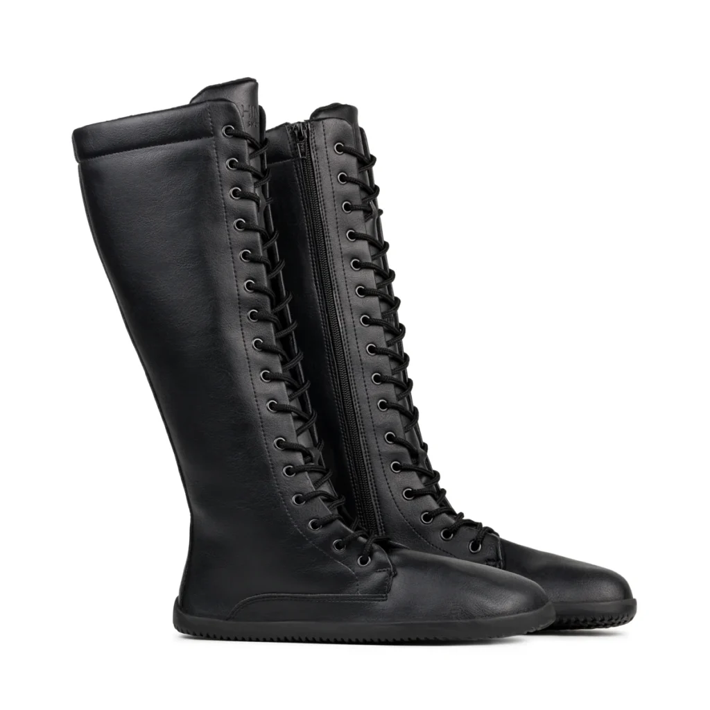Complete List of Barefoot Boots for Men & Women Mickle, July 29, 2025December 13, 2025 See which Barefoot Shoes made our Top 5 Listand why they’re loved by walkers, runners, and explorers. Searching for a barefoot boot that can handle cold weather? You’re in the right place. There’s no need to sacrifice foot health when temperatures drop—barefoot living is possible year-round. Explore our complete list of minimalist boots for men and women, organized by style. Table Of Contents All The Wide Toe Box Boot OptionsChelsea BootsLace-up/Combat BootsHiking BootsDesert/Chukka BootsPull-On & Zip-Up Winter BootsTall & Riding BootsRubber Rain BootsVegan Boots All The Wide Toe Box Boot Options If you’re after a specific style of barefoot boot, you’re in the right place! This list is carefully maintained and regularly updated to help you find the best options available. Chelsea Boots Xero Ridgeway (left) and Be Lenka Entice (right) Ahinsa – Vegan. These Chelsea boots are comfy, zero-drop, and roomy without looking bulky—plus they’re vegan, flexible, and weather-resistant. Aylla Uma – I love my Aylla Uma Chelsea boots—warm, flexible, and foot-shaped without looking bulky, with quality leather and a cozy wool lining. bLifestyle (EU Only) – I’m impressed with my bLIFESTYLE boots—they’re warm, stylish, and offer a true barefoot feel with a flexible sole and roomy toe box. Be Lenka – Plenty of Chelsea boot options! They feature a durable outsole and an extra-wide toe box for maximum comfort. Bohempia Rola – Vegan.I love my Bohempia ROLA Chelsea boots—they’re lightweight, flexible, and stylish with a zero-drop sole, roomy toe box, and vegan materials made sustainably in the EU. Camper Peu – This line includes several models, including Chelsea boots, with a slimmer toe box than most barefoot options—browse by men’s, women’s, or kids’ to see them all. Conker Shoes Chelsea – These are customizable and can be ordered with a flat barefoot sole, though they typically come with a thicker, more robust sole for added durability. Crupon Tabbie – I love my Crupon Tabbie Nero sandals—they’re beautifully handcrafted, flexible, and offer a true barefoot feel with elegant style. Drifter Leather Chelsea – I love my custom Drifter Leather Chelsea boots—they fit like a glove, look amazing, and still give me that natural barefoot feel. FeelBarefoot – I adore my FeelBarefoot boots—they’re handmade in Turkey with a zero-drop sole, wide toe box, and soft leather that breaks in beautifully, all for a great price. Gaucho Ninja Chelsea – I love my Gaucho Ninja Chelsea boots—they’re handcrafted, zero-drop, and built with premium leather for lasting barefoot comfort and style. Groundies – Some models come in two widths! I love my Groundies Chelsea boots—they’re stylish, flexible, and barefoot-friendly with a roomy toe box and sleek, timeless design. Lems Chelsea – These are thicker with a stack height of 14.5mm, but really wide! Luks Chelsea – I love my Luks Barefoot Chelsea boots—they’re soft, lightweight, and roomy, with customizable soles and a great barefoot feel right out of the box. Koel Fila – The Koel Chelsea boots impressed me with their sleek style, water-repellent leather, and barefoot design that keeps my feet comfy and free all day. Magical Shoes Lupino – These run small, I recommend sizing up one. Love them for how soft and flexible they are. Available in leather or vegan. Mukishoes Chelsea (available seasonally) – These are one of my favorites! Available in leather, or a vegan cork. PaperKrane – PaperKrane Chelsea boots are lightweight, flexible, and stylish—offering a zero-drop sole, wide toe box, and fun designs in vegan or leather options. Ruth Emily Davey – Custom and ready made sizes available. Shapen Barefoot – Victory is a taller chelsea boot. Shapen Victory Chelsea boots are sleek, barefoot-friendly, and spacious—with zero-drop soles and a wide toe box wrapped in elegant leather. Skinners – Skinners Chelsea boots combine barefoot comfort with sleek leather, a wide toe box, and a removable insole for customizable ground feel. Softstar Shoes Primal Chelsea – Soft and comfortable with a very wide toe box. Wildling Bruklin – Wildling’s Bruklin boots are perfect for chilly days—warm, water-resistant, and super flexible with that barefoot feel I love. Xero Shoes Ridgeway – This is a great Chelsea boot—comfortable, stylish, and also available in a Men’s version. Zaqq – Vegan options. This shop offers tons of Chelsea boot styles—plenty of options for different looks and foot shapes. Zkama Shoes – You might not see all the options listed, but she makes a really nice Chelsea boot worth checking out. Lace-up/Combat Boots Peerko Go (left) and Shapen Urbaneer (right) Ahinsa – Vegan. The Ahinsa Jaya combat boots are lightweight, flexible, and vegan with a roomy toe box—perfect for barefoot comfort in any season. Be Lenka – These Synergy boots are my go-to pair—they look sharp, feel incredibly comfy, and have just the right barefoot flexibility and toe space. bLifestyle (EU only) – These bLIFESTYLE boots are super comfy and warm, with a flexible sole and wide toe box that make winter walks feel natural and easy. Camper Peu – The Brutus Chelsea boots are stylish, durable, and surprisingly comfy—just size up for the best fit. Conker Shoes Derby – They also offer a brogue derby—customizable with a barefoot sole option, though most come with a thicker, more durable base. Drifter Leather Foris – My Drifter Leather Foris boots are lightweight, flexible, and barefoot-friendly—easily the most comfortable boots I’ve owned. Fairy Steps – She has some cute lace-up boots, but the ready-made sizes run narrow—custom sizing is available, though. Fare – These Avila shoes feel super light and flexible, with plenty of toe room and just the right support—love the breathable lining and extra